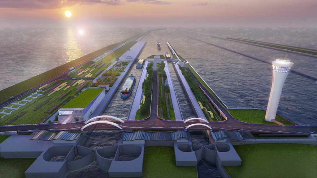 The third section of the Dalu Line East Extension Channel Improvement Project focuses on the construction of a shipping hub, including the construction of a new Class III double line ship lock, regulating gate, anti salt pump station, traffic bridge, navigation embankment and other supporting facilities. After the completion of this hub, it will become the largest inland waterway transportation hub in Shanghai. Thousand ton container ships can achieve two-way navigation, reducing the distance for inland ships to directly reach Yangshan Port by about 70 kilometers. This is of great significance for promoting river sea direct transportation and high-quality development of inland waterways, improving the efficiency of the Yangtze River Delta water transportation network, and enhancing regional flood control capabilities.